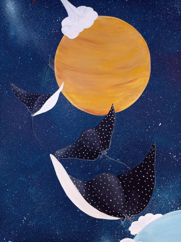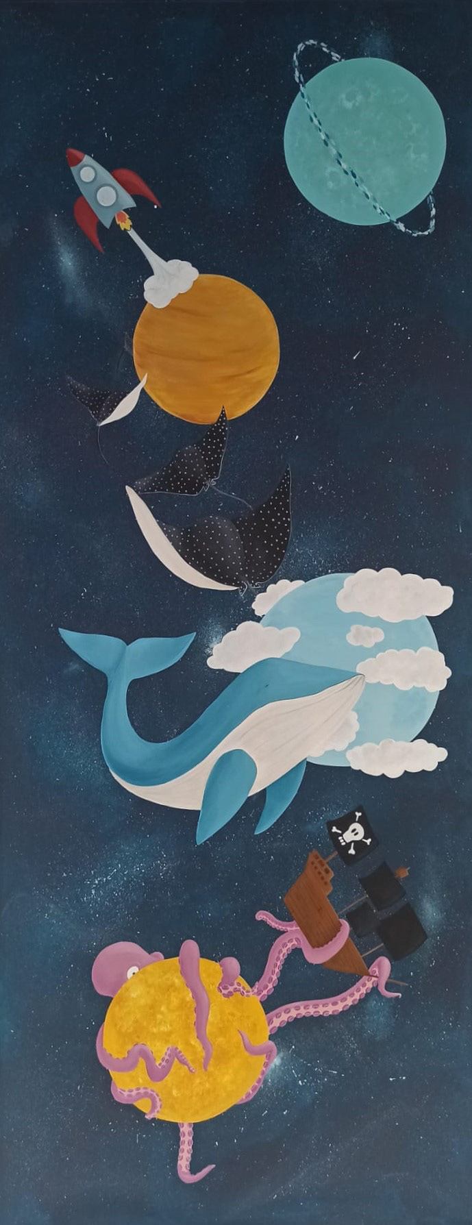 Panoramique pour une chambre d'enfant sur le théme de théme de l'océan et l'espace